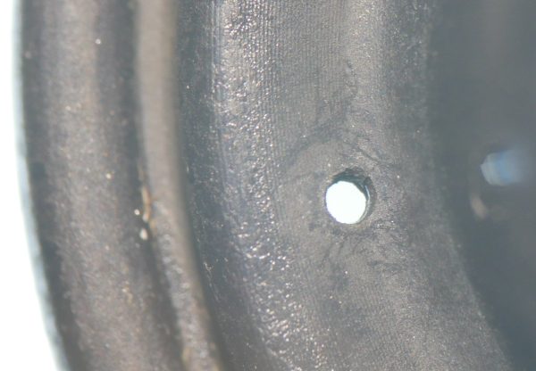 Reikä on pieni vain muutaman kymmenysosa millimetrin kokoinen (n. 0,3 mm).