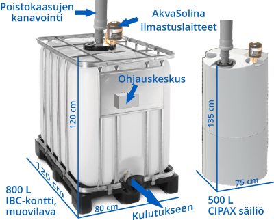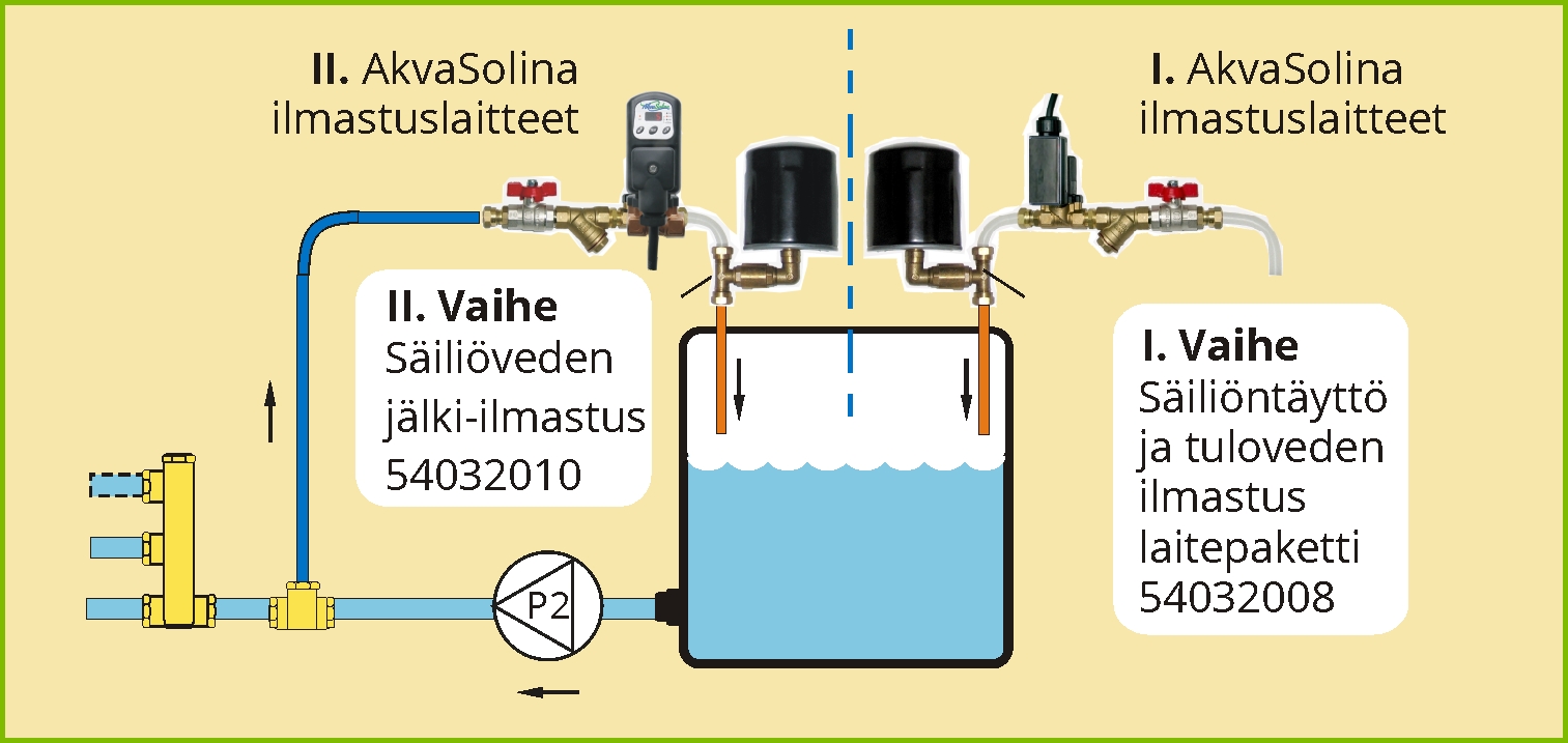 - AkvaSolinan säiliöilmastuslaite hapettaa veden säiliön täytön yhteydessä.